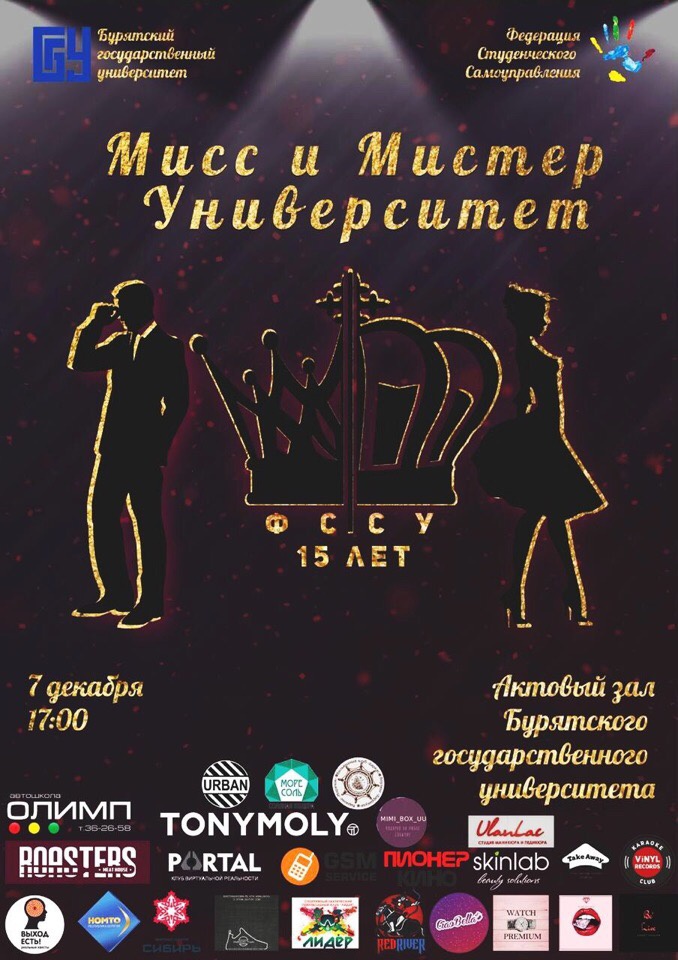 7 декабря в 17:00 в Актовом зале БГУ состоится самое долгожданное событие этого года - Конкурс красоты, таланта и грации "Мисс и Мистер Бурятский государственный университет-2018"!