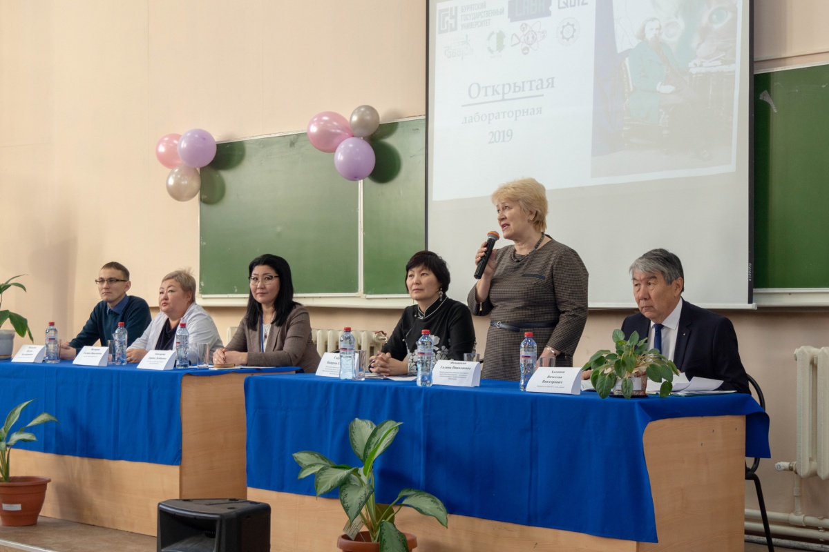 На торжественном открытии научно-просветительской акции «Открытая лабораторная» с приветственными словами выступили первый заместитель министра образования и науки Республики Бурятия Г.Н. Фомицкая, начальник отдела науки и высшей школы МОиН РБ Б.С. Гыргенова, проректор по НИР БГУ В.В. Хахинов, декан факультета биологии, географии и землепользования Д.Д. Максарова, декан химического факультета Г.Н. Баторова, зам. декана по УР физико-технического факультета А.А. Машанов.