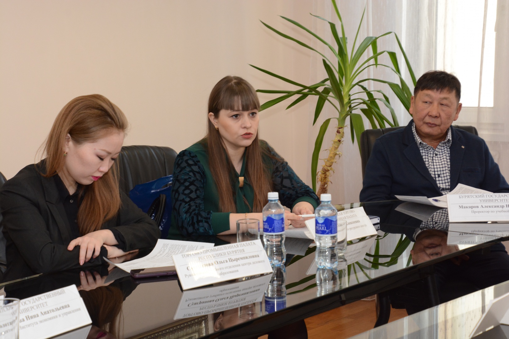 26 февраля состоялась первая рабочая встреча представителей экспертной комиссии с руководством университета: ректором БГУ Н.И. Мошкиным, проректором по учебной работе А.Н.Макаровым, представителями профессорско-преподавательского состава университета: начальником учебно-методического управления Э.Т.Павловой, начальником отдела управления качеством УМУ Юн-Хай С.А., старшим методистом отдела управления качеством УМУ Жорниковой М.Н., и.о. директора Института экономики и управления Золотаревой Н.А., зав. кафедрой бух. учета и финансов Батуевой Д.Д., а также с представителями работодателей: генеральным директором ООО «Спецтехника» Ивановым В.В., директором Бурятского территориального института профессиональных бухгалтеров Ивановой М.Д.