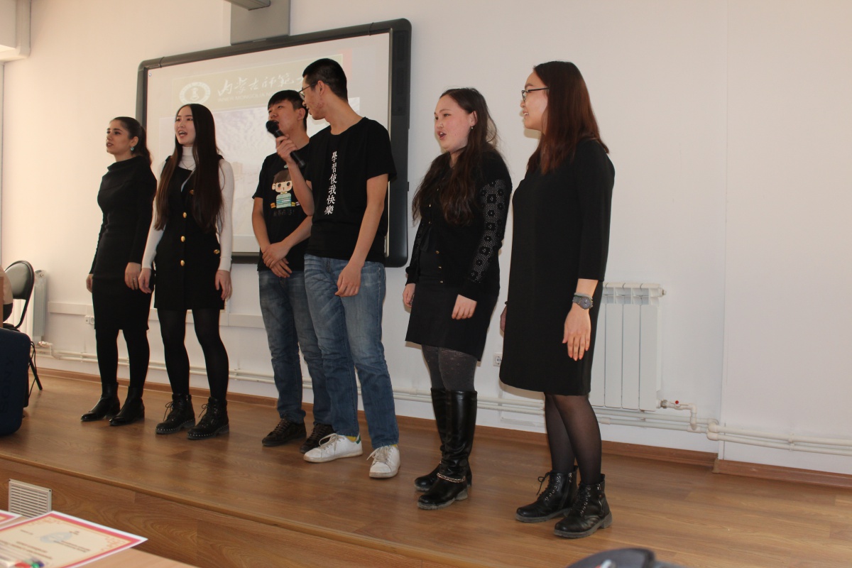 Затем состоялся творческий конкурс, который организовали и провели студенты 4 курса Восточного института – гр.16253 (турецко-китайская филология) и гр.16251 (монгольско-китайская филология). На конкурсе были представлены вокальные, хореографические и инструментальные выступления, юмористические сценки и сказки на китайском языке.