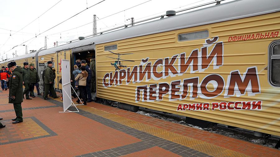 Поезд передвижной военно-патриотической акции «Сирийский перелом» проедет по многим крупные городам России от Москвы до Владивостока, всего 61 населенный пункт. В нашем городе состав сделал остановку на 2 часа, и все желающие смогли ознакомиться с экспозицией передвижного музея Акции. Акция проводилась для того чтобы показать успехи Вооруженных сил Российской Федерации и Сирийской Арабской Республики в борьбе с международным терроризмом и экстремизмом и приобщить молодежь России к историческим урокам.