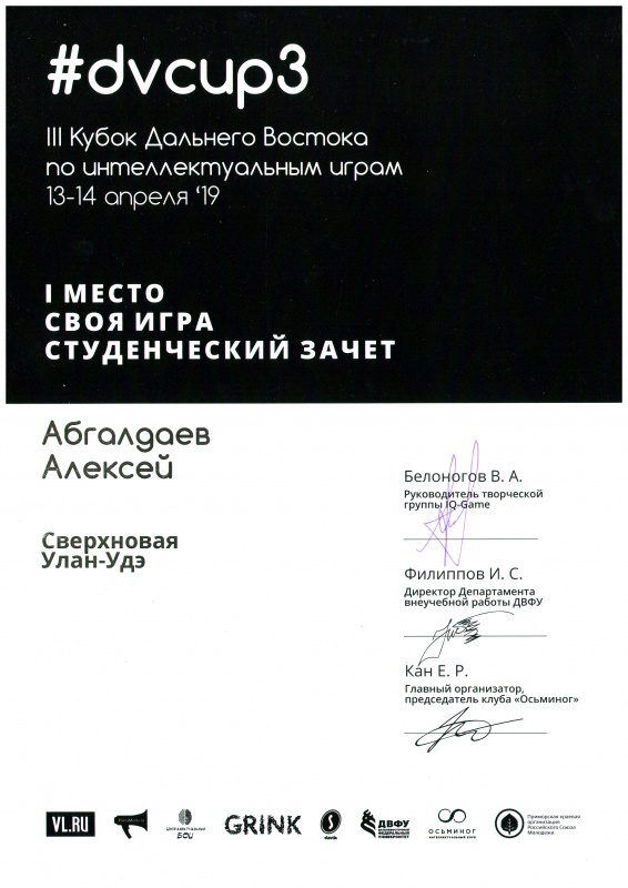 Об участии в интеллектуальных играх во Владивостоке рассказал Алексей Абгалдаев: