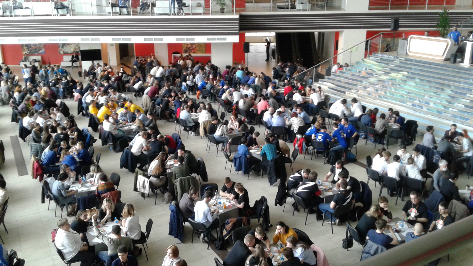 В первый день Кубка было задано 45 из 90 вопросов "Что? Где? Когда?" и полностью проведён брейн-ринг. По итогам этих 45 вопросов мы прочно входили в тройку лидеров: у первой на тот момент команды было 27 очков, у второй - 26, у нас - 25, а остальные команды набрали меньше 12 очков (часть итогов первого дня: https://pp.userapi.com/c850732/v850732100/fd1cf/9A0MU..).