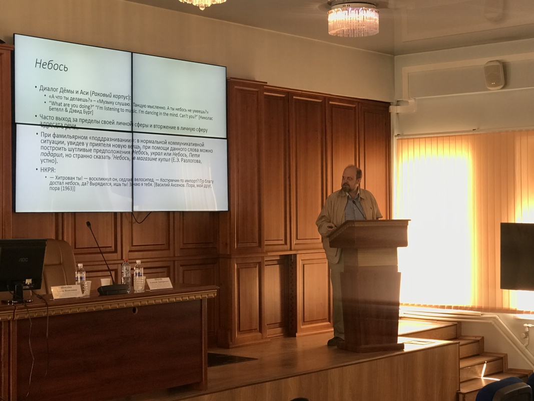 В рамках конференции состоялся научно-практический семинар «Русский язык и внеязыковая действительность», участники которого обсудили вопросы состояния русской речевой культуры и ее динамики, аспекты исследования языковой национальной картины мира. В качестве ведущих семинара выступили гости конференции из Института русского языка имени В.В. Виноградова РАН: Е.Я. Шмелёва, канд. филол. наук, заместитель директора по научной работе, ведущий специалист по культуре русской речи, член комиссии Международной научно-практической конференции школьников «Языкознание для всех»; А.Д. Шмелёв, д.филол.н., проф., заведующий отделом культуры русской речи, председатель Орфографической комиссии РАН; И.Б. Левонтина, канд. филол. наук, один из авторов «Нового объяснительного словаря синонимов русского языка», автор работ по лексической семантике, лексикографии, этнолингвистике.