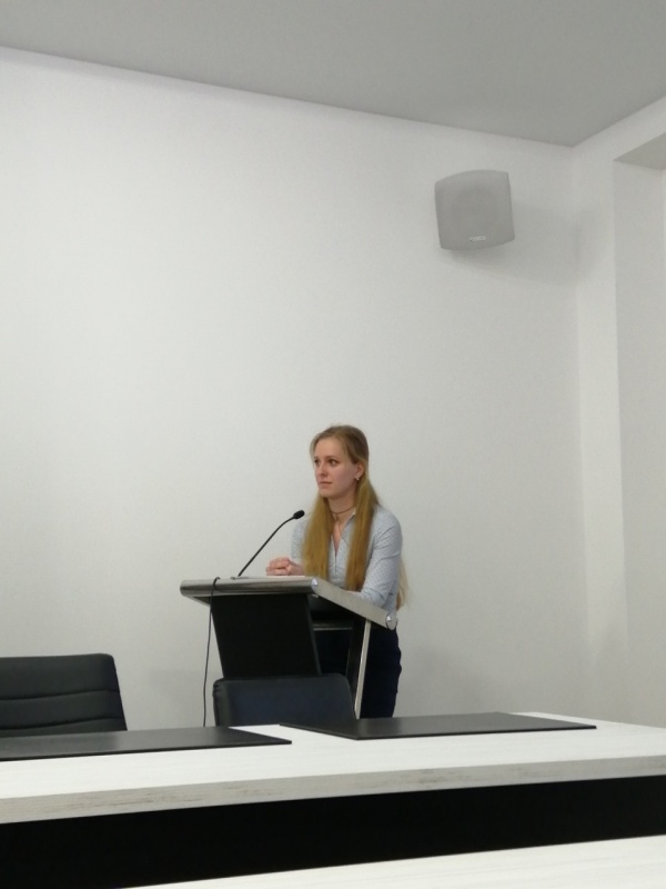 Калашникова Виктория показала неплохие результаты, защищая эссе по дополнительной номинации по теме "Актуальные вопросы правового регулирования студенческого спорта".