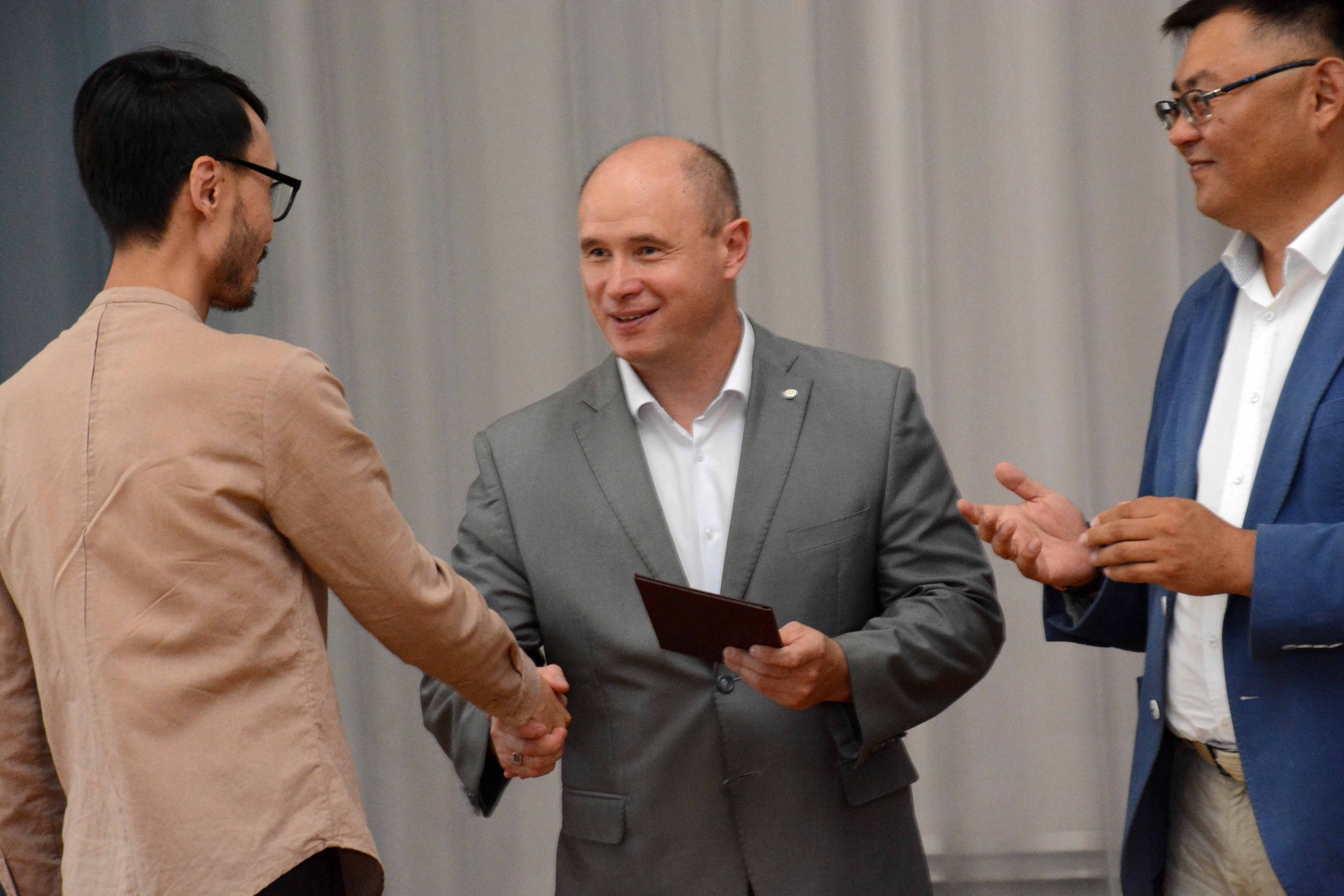 С поздравлением и напутственным словом выпускникам выступил ректор БГУ Н.И. Мошкин. Он отметил, что выпуск 2019 года является первым выпуском после присвоения университету имени бурятского ученого Доржи Банзарова. Николай Ильич пожелал выпускникам новых свершений и благосостояния. Он вручил дипломы с отличием 16 выпускникам.