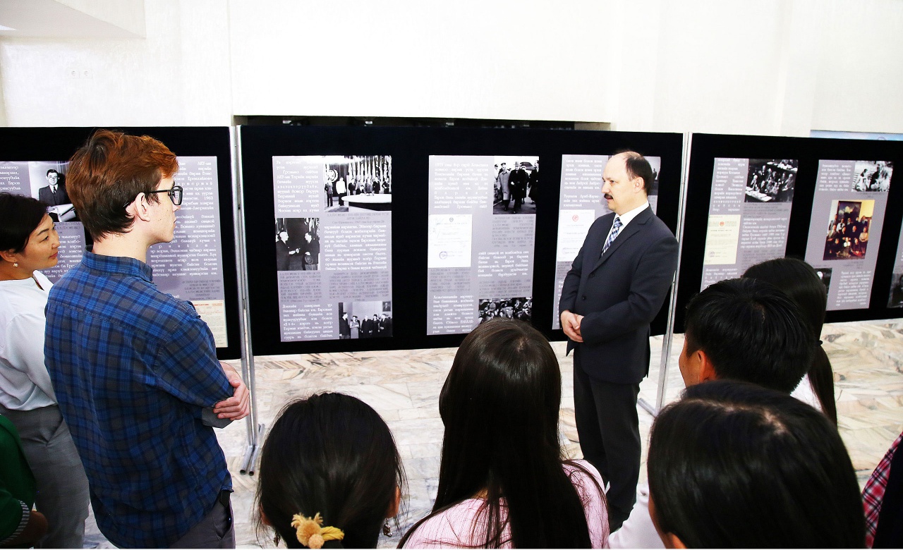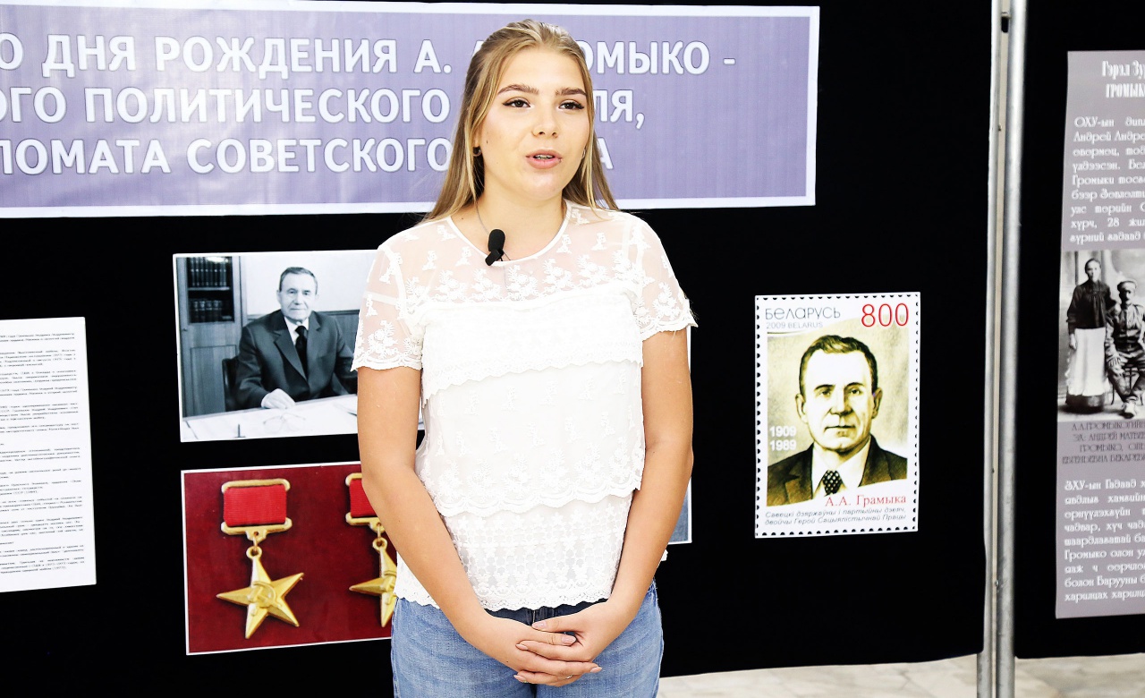 Важным мероприятием было посещение Российского центра науки и культуры и встреча с его руководителем Базархандаевым А.Р. На встрече руководитель представительства Россотрудничества в Монголии рассказал об особенностях работы Российского центра науки и культуры, провел небольшой обзор о начале зарождения советско-монгольских отношений и об отношении двух стран в современном мире. Также студенты познакомились со слушателями летних интенсивных курсов русского языка при РЦНК, с которыми вместе посетили выставку, посвященную 110-летию со дня рождения видного политического деятеля, дипломата Советского Союза А.А. Громыко. Советник Посольства Республики Беларусь в Монголии Мрочек В.Г. подробно рассказал всем присутствующим о жизни и деятельности А.А. Громыко.
