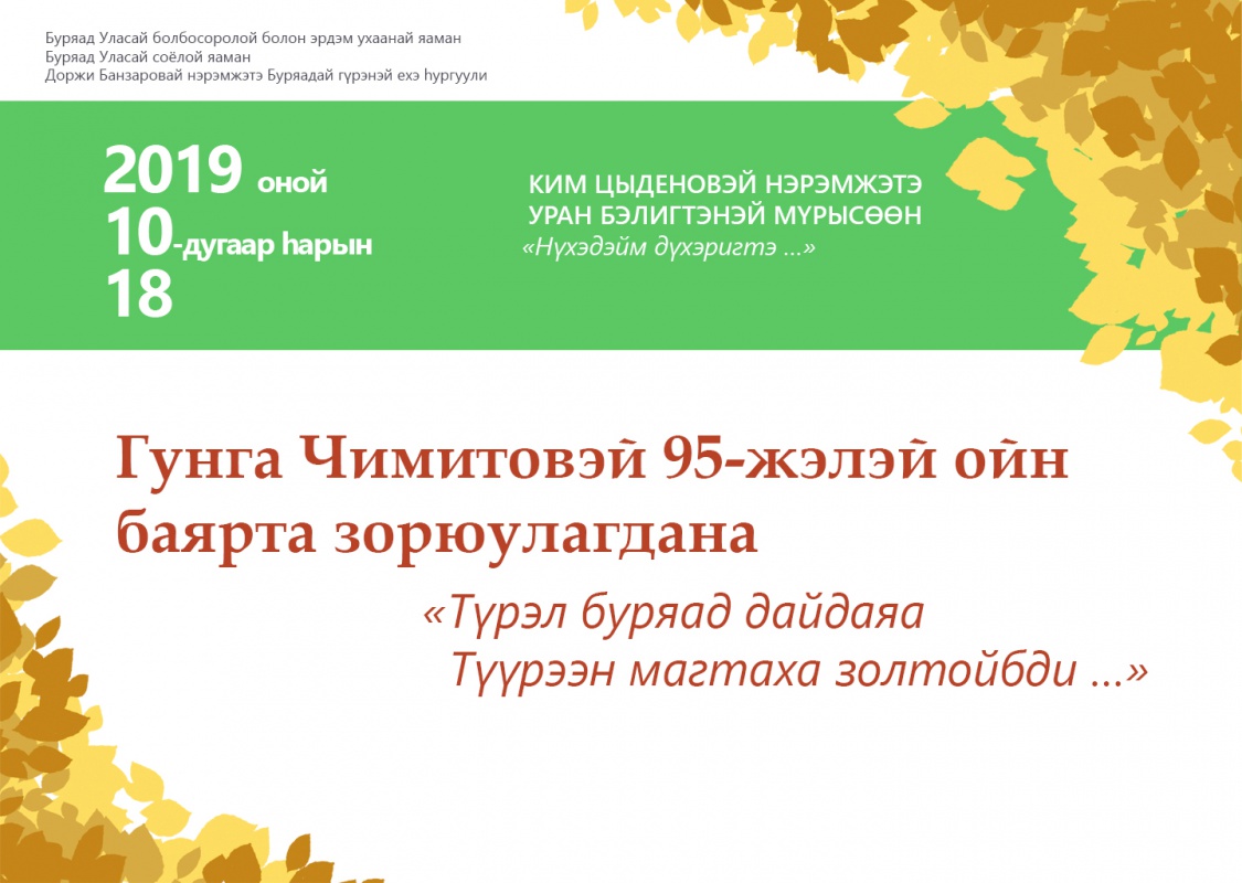 «Нүхэдэйм дүхэригтэ…» (В кругу друзей) - VI республиканский творческий конкурс имени Кима Цыденова, посвященный 95-летию Г. Чимитова, пройдет в БГУ им. Д. Банзарова 18 октября 2019 г.