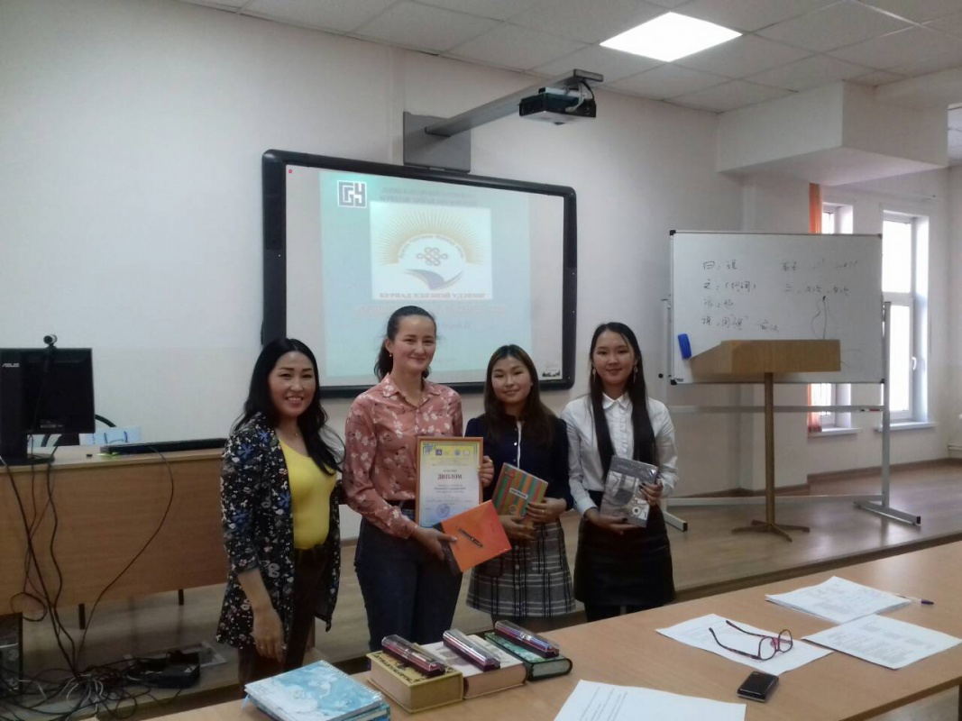 23 октября с.г. состоялся ежегодный фонетический конкурс в рамках университетского праздника «Дни бурятского языка-2019» среди студентов 2-го курса БГУ, изучавших бурятский язык как второй. В этом году конкурс был посвящён 95-летию со дня рождения известного бурятского народного поэта и писателя Гунги Чимитова.