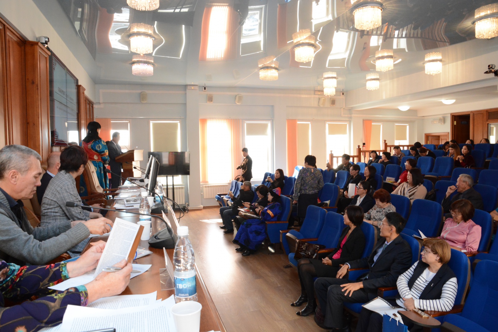 На пленарном заседании было прослушано четыре доклада. Зав. кафедрой бурятской и эвенкийской филологии ВИ, к.пед.н., доц. Ошоров С.Г. в своем докладе ознакомил участников конференции с жизнью и научно-педагогической деятельностью проф. Ц.-Ж.Ц.Цыдыпова. Также на пленарном заседании были представлены доклады д.и.н., проф. Дугарова В.Д. - «Подвиги ученых – филологов БГПИ – БГУ имени Доржи Банзарова: Ц.-Ж. Ц. Цыдыпова, М.Н. Мангадаева, У-Ж. Ш. Дондукова, Ж.С. Сажинова, Ц.(С) Б. Будаева и их соратников на фронтах Великой Отечественной войны в отечественной историографии», д.филол.н., с.н.с. отдела языкознания ИМБТ СО РАН Даржаевой Н.Б. - «Научный вклад Ц.-Ж.Ц. Цыдыпова в изучение сложного предложения в бурятском языке». Монгольский ученый, доктор Ph.D. Л. Оюунцэцэг рассказала о работе Академии бурятоведения Монголии и преподнесла в дар кафедры книги, изданные в Монголии.