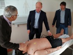 Другой симулятор обследования органов брюшной области с высокой степенью реалистичности позволило не только отрабатывать такие ключевые навыки, как пальпация органов брюшной полости в норме и при патологии, но и благодаря электронной высокотехнологичной матрице контролировать правильность выполнения.