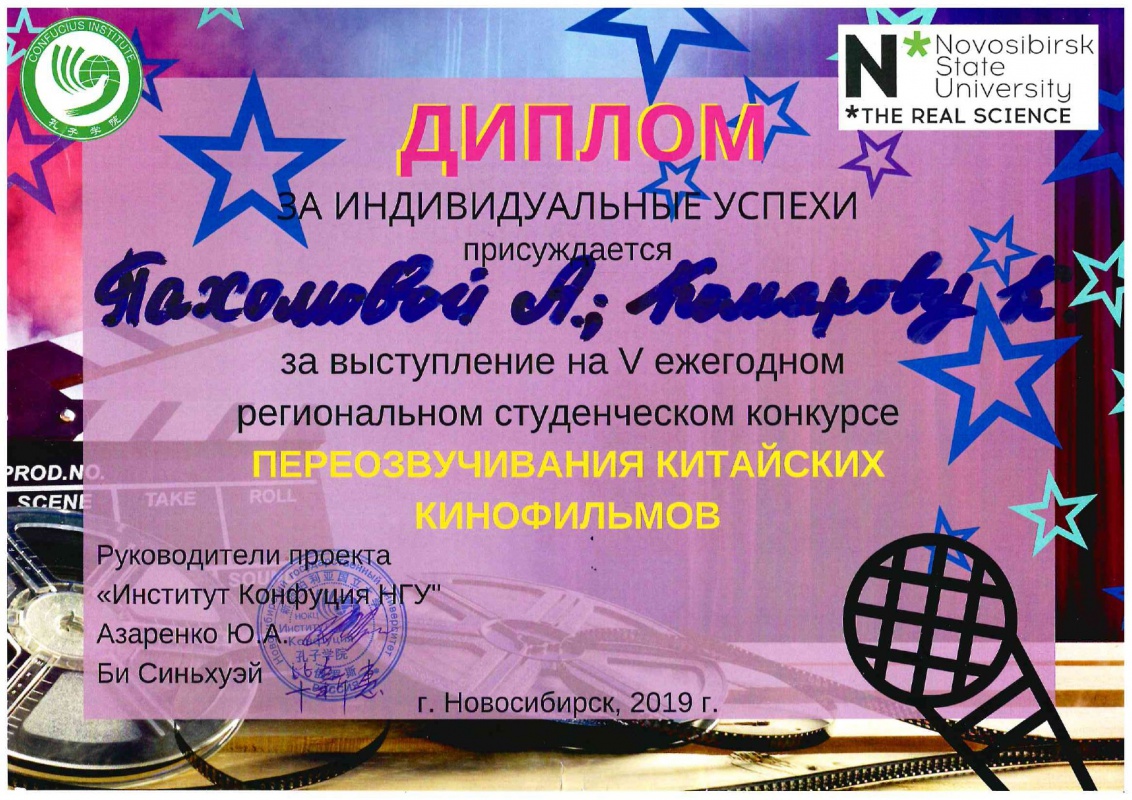 26 октября на базе Института Конфуция Новосибирского государственного университета в г. Новосибирске состоялся V Сибирский конкурс озвучивания китайских кинофильмов, посвященный 70-летию установления дипломатических отношений Китая с Россией.
