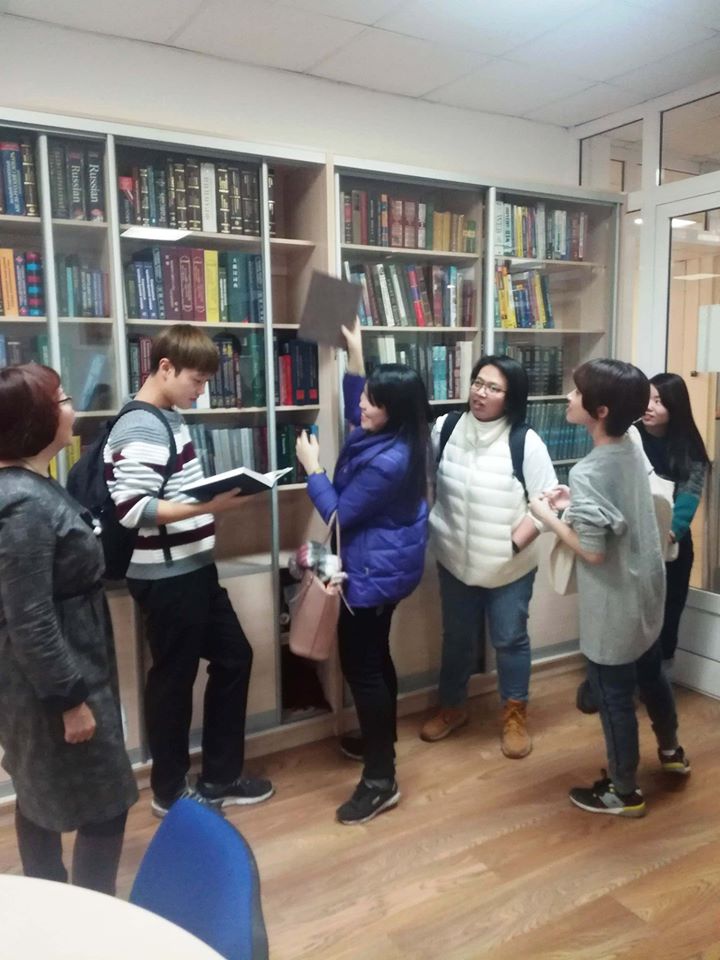 Студенты познакомились с историей библиотеки, увидели настоящие раритеты фонда редких и ценных изданий, побывали в книгохранилище. Познакомились с автоматизированным способом обслуживания – автоматическая станция возврата книг, и станция книговыдачи. Особое впечатление на ребят, конечно же, произвел Зал корейской культуры и Фонд института Конфуция. Книги на родном языке навеяли мысли о доме. Все студенты зарегистрировались в библиотеке, получили читательские билеты.