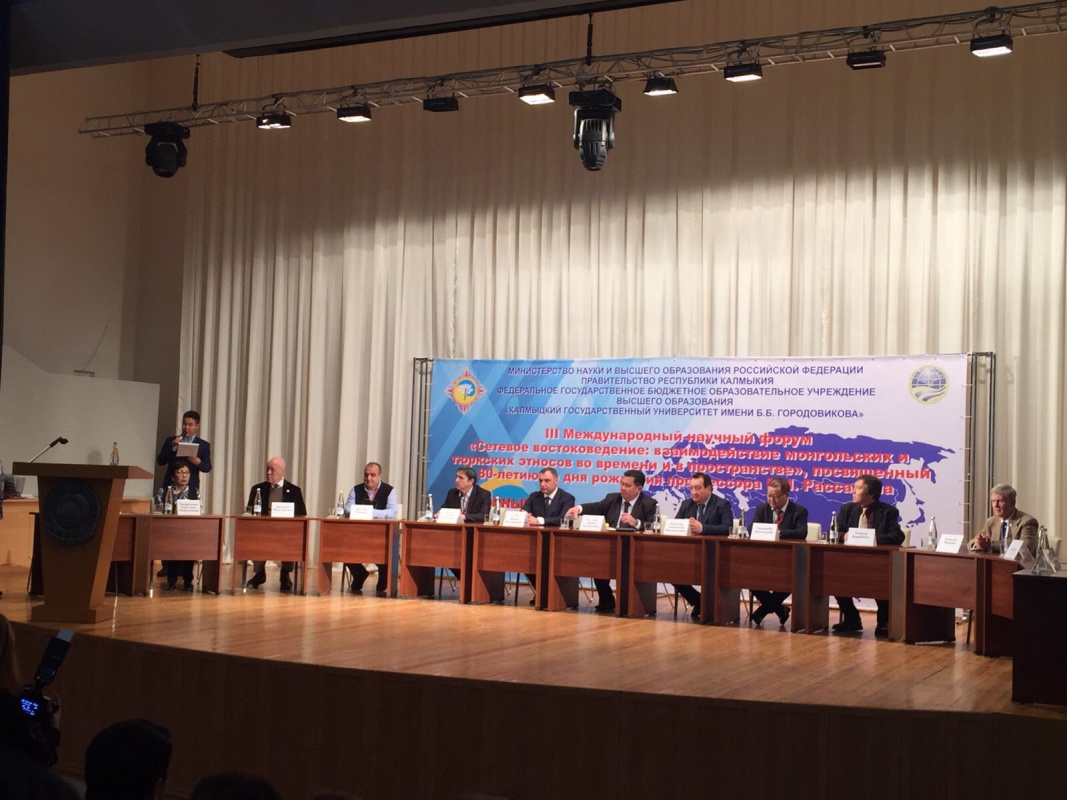 В этот же день на пленарном заседании прозвучали доклады по ключевым темам данного научного форума: ректора Калмыцкого государственного университета Б.К. Салаева «О роли Калмыцкого государственного университета им. Б.Б. Городовикова в развитии сетевого востоковедения: преемственность традиций и взгляд в будущее.», д.филол.наук, заведующей сектором языков народов Сибири Института филологии СО РАН (г. Новосибирск) Н.Н. Широбоковой «В.И. Рассадин – лингвист и учитель», д.филол.наук, директора Института языка и литературы Академии наук Монголии Гаадамба Билгүүдэя (г. Улан-Батор, Монголия) «Институт языка и литературы Академии наук Монголии и новые начинания российско-монгольского научного сотрудничества», д.филол.наук, профессора Хельсинского университета Янхунена Юхи Антеро, (г. Хельсинки, Финляндия) «Монгольские языки – сила, слабость, угрозы», PhD, профессора Стамбульского университета Мехмета Ольмеза "From earlier period to Middle Ages Turkic – Mongolian Language Contact: An Overview» (г. Стамбул, Турция), PhD, профессора Геттингенского университета им. Георга-Августа Рекеля Йоханнеса, (г. Геттинген, Германия) «Petroglyphs of the Altai and Central Asia as a reflection of prehistoric society».