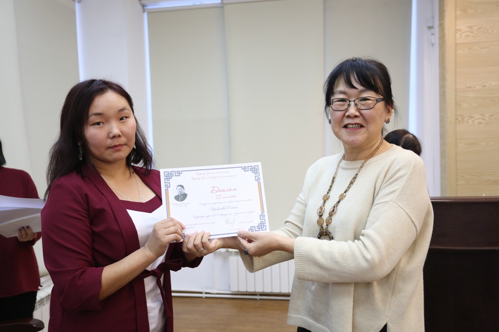 В первой возрастной группе II место заняла студентка 3 курса группы 16170 Ольга Цыбенова. Во второй возрастной группе I место занял магистрант 2 курса Лубсан Бальжуров. Победителям и призерам были вручены дипломы и денежные призы. Поощрительными призами были награждены студентки 3 курса группы 16170 Анита Дубданова и 1 курса группы 16190 Аяна Санжаева.