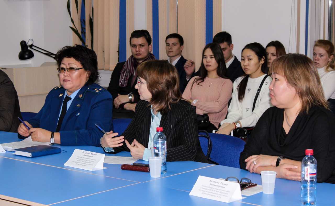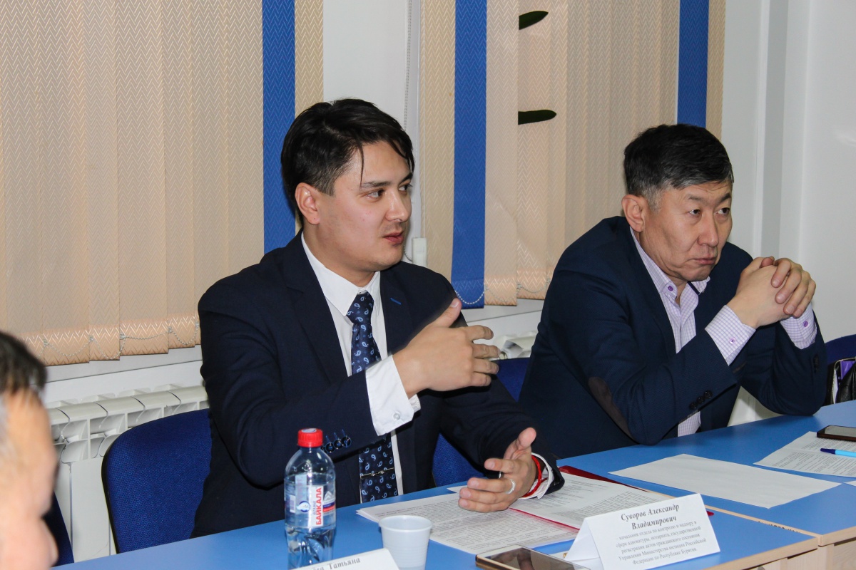 В работе круглого стола приняли участие Гомбоева Э. В. – старший помощник прокурора Республики Бурятия по рассмотрению обращений и приему граждан, старший советник юстиции с докладом на тему «Организация работы с обращениями и приемом граждан в Прокуратуре Республики Бурятия»; Суворов А. В. – начальник отдела по контролю и надзору в сфере адвокатуры, нотариата, государственной регистрации актов гражданского состояния Управления Министерства юстиции РФ по Республике Бурятия рассказал «О результатах мониторинга деятельности участников государственной и негосударственной систем бесплатной юридической помощи на территории Республики Бурятии за 2018 г. и о состоянии правового информирования и правового просвещения населения»; Базаров Б. Н. – заместитель начальника Управления по обеспечению деятельности мировых судей в Республике Бурятия проинформировал «О деятельности Управления по обеспечению деятельности мировых судей в Республике Бурятии в сфере оказания бесплатной юридической помощи»; Бальжиев Б. А. – руководитель Юридической клиники, старший преподаватель кафедры теории и истории права и государства ФГБОУ ВО «Бурятский государственный университет имени Доржи Банзарова» осветил деятельность юридической клиники как средства обучения проектной деятельности в профессиональной компетенции будущих юристов; Богодухов Н. А. – магистрант юридического факультета ФГБОУ ВО «Бурятский государственный университет имени Доржи Банзарова» внес предложения о совершенствовании деятельности юридических клиник.