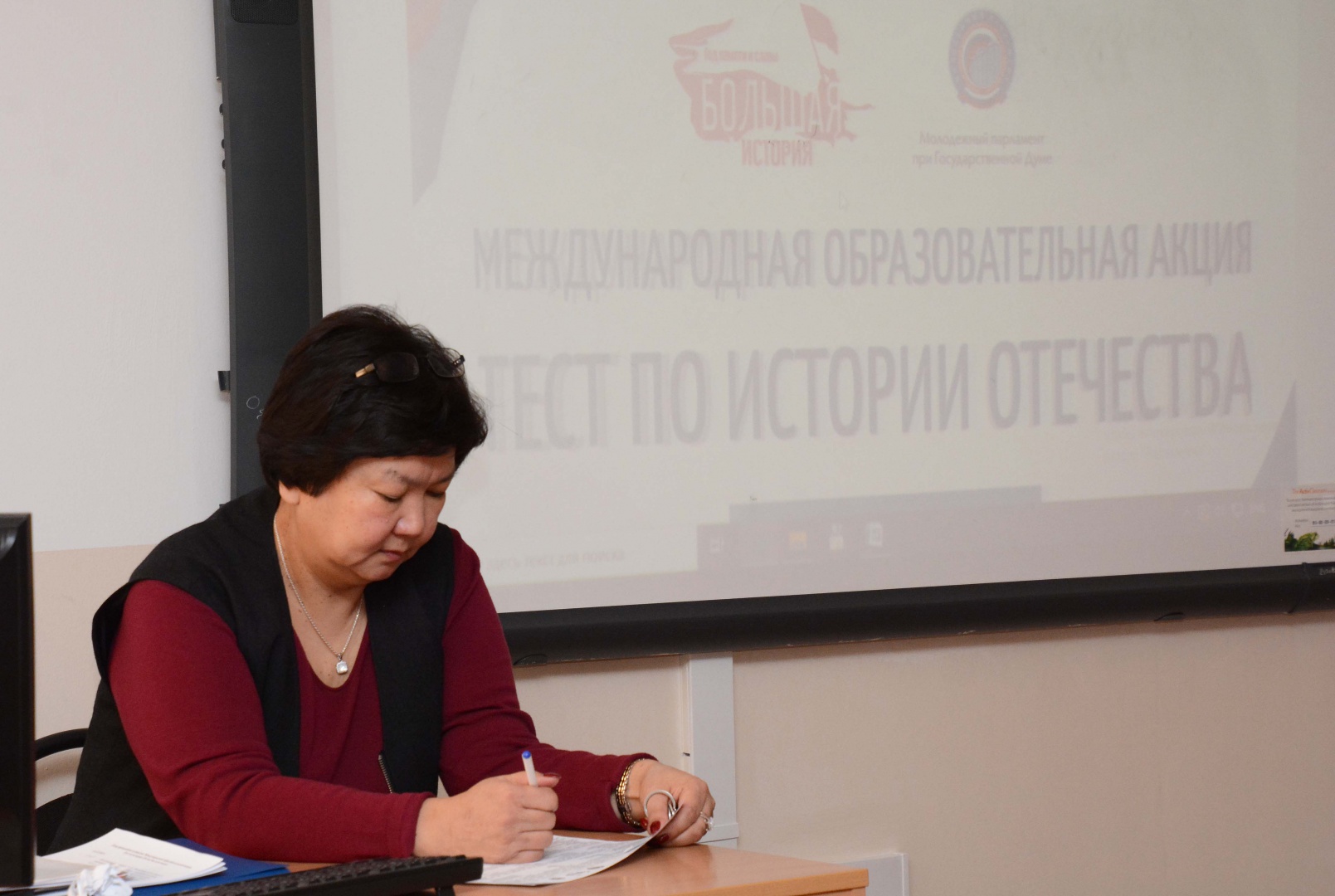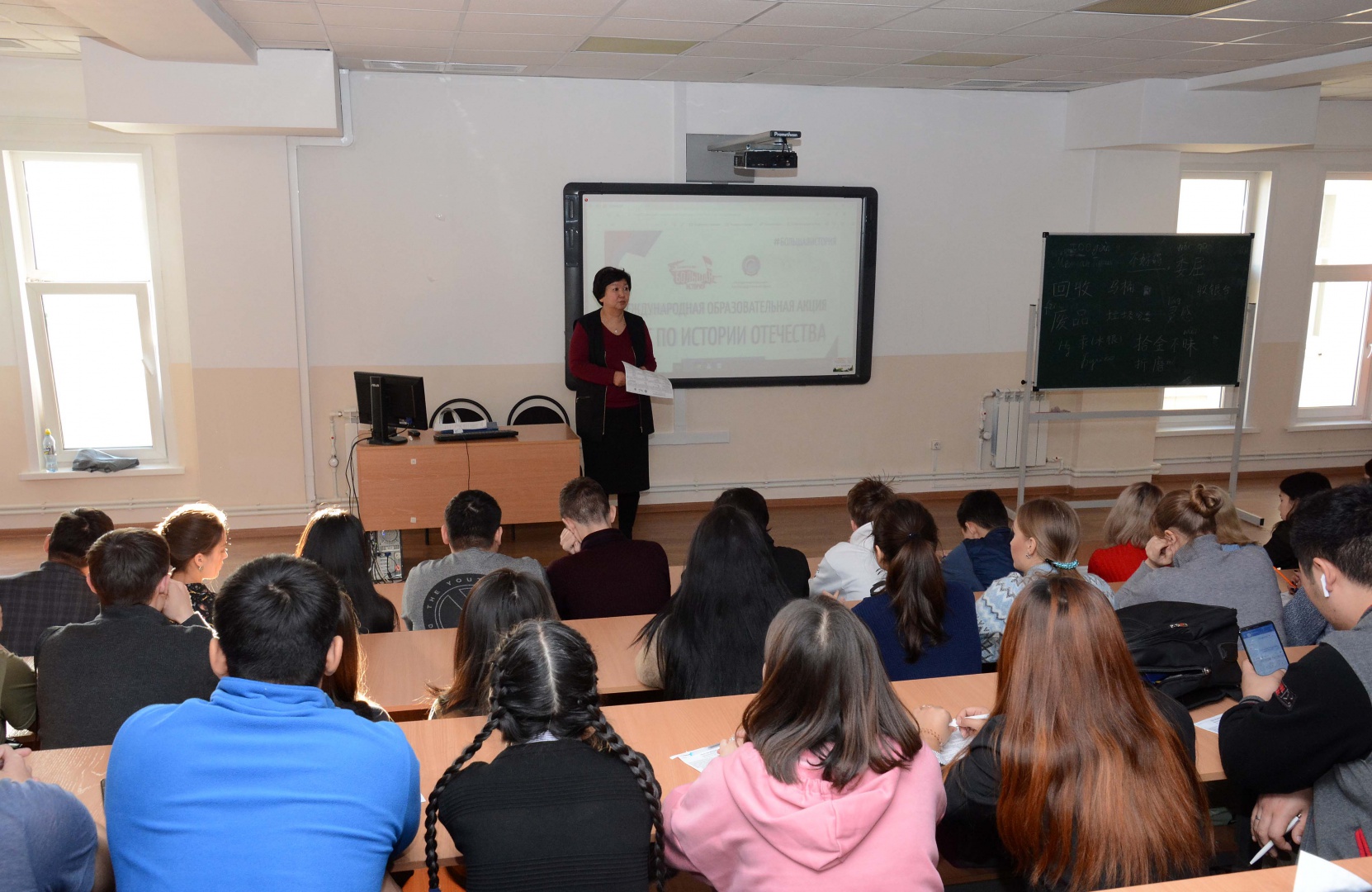 Бурятский государственный университет стал одной из площадок проведения международной образовательной акции «Тест по истории Отечества» в рамках проекта «Каждый день горжусь Россией». На площадке университета акцию провела кафедра всеобщей и отечественной истории (заведующий к.и.н., доц. О.Н. Полянская) Исторического факультета (декан, д.и.н., доцент В.В. Номогоева). В выполнении заданий теста приняли участия студенты разных направлений подготовки БГУ.
