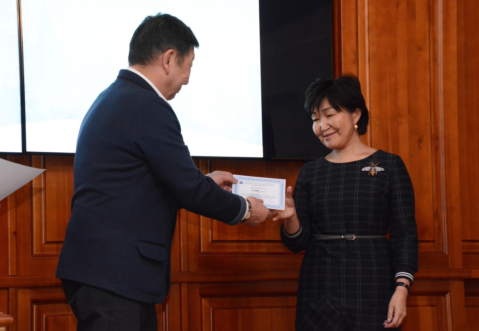 Аюржанаевой Дулмажап Цыденешиевне, к. г.-м. н., старшему преподавателю кафедры геологии ХФ (УМК «Металлогения»);