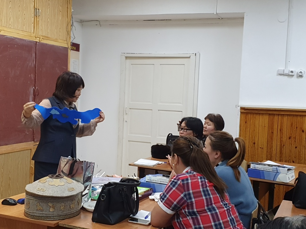 В работе обучающего семинара по теме УМК «Байкальский сундучок» в решении задач образования для устойчивого развития (ОУР)» приняли участие более 80 учителей разных предметов, работников детских садов, учреждений дополнительного образования. С учениками старших классов, увлеченных химией работала доцент каф. неорганической химии Дмитриева О.М., юными ботаниками – зав.каф. ботаники –Басхаева Т.Г., на современном оборудовании, что было закуплено центром «Грань» - победителем в конкурсе Фонда президентских грантов. Ребята остались в полном восторге, изучив качество своей питьевой воды и воды речки Кижинги, местной фауны, что явилось лучшей агитацией для поступления ребят на соответствующие факультеты и медицинский институт.