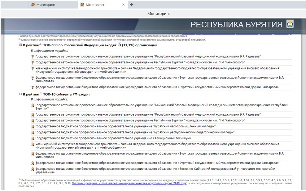 А также Колледж БГУ вошел в рейтинг ТОП-10 по Республике Бурятия лучших образовательных организаций СПО!