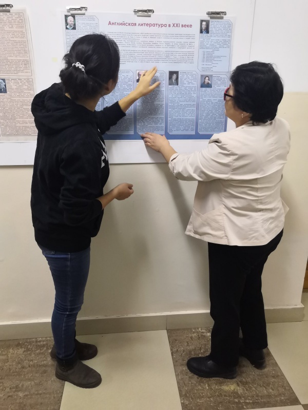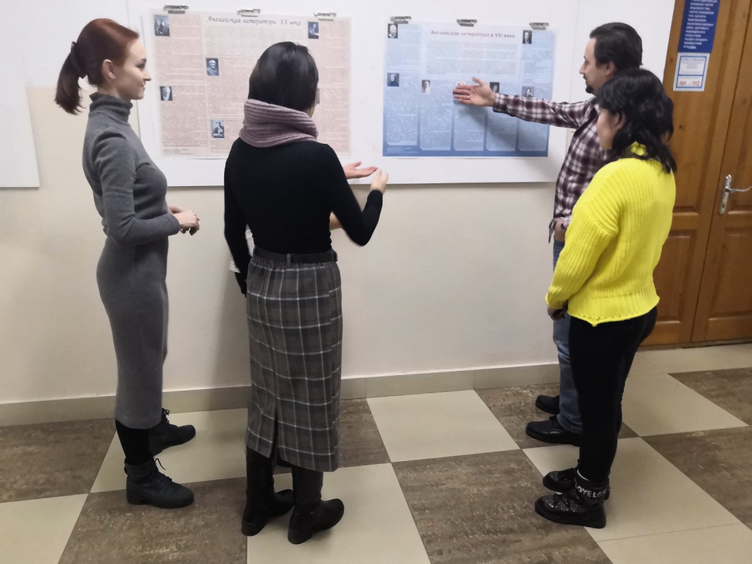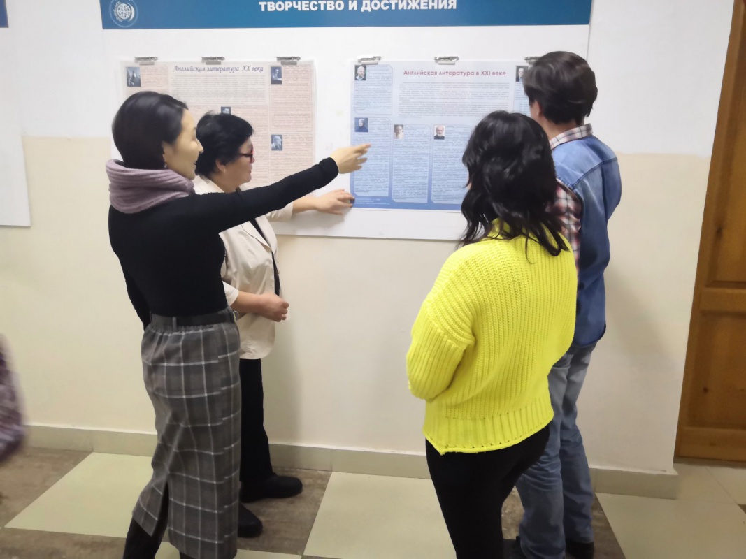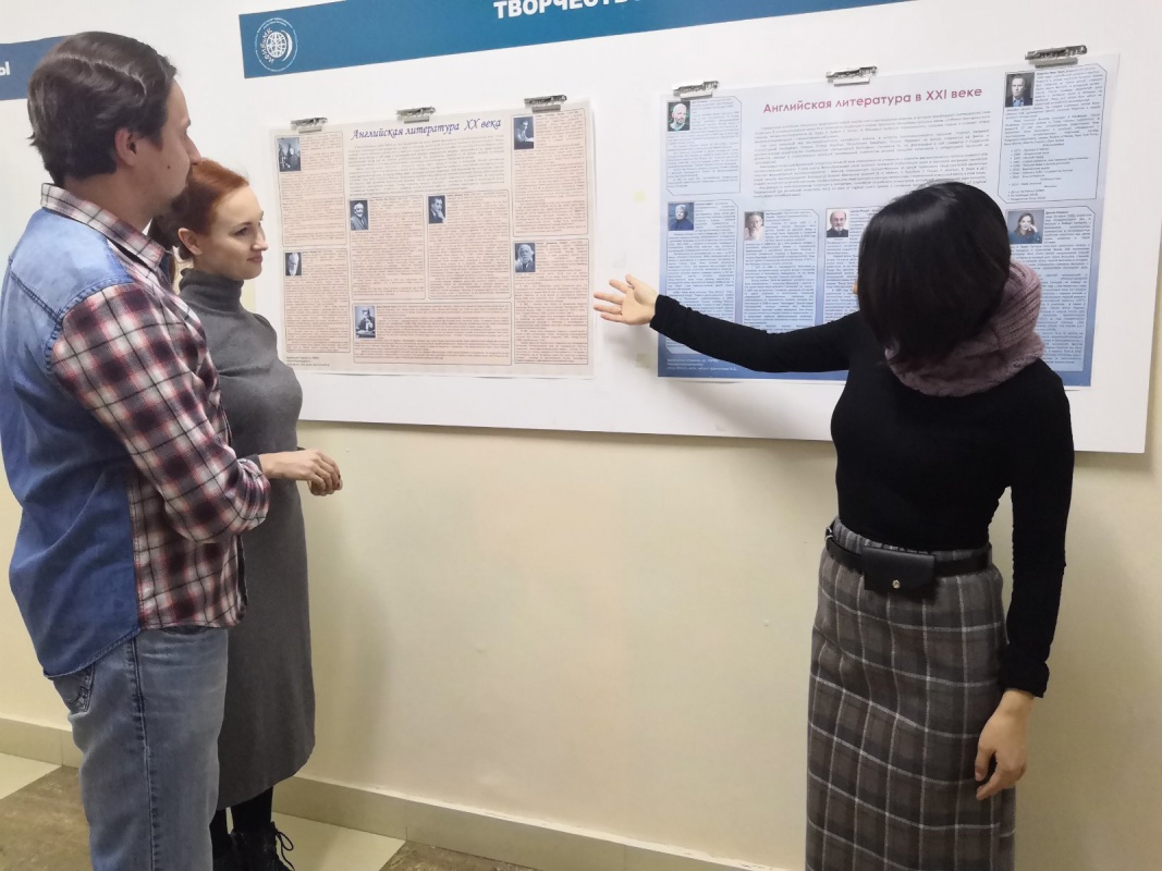 Студенты группы 18490с, обучающиеся по программе 45.03.02 Лингвистика, успешно сдали экзамен по дисциплине «Литература страны первого иностранного языка» доценту кафедры русской и зарубежной литературы Марии Даниловне Данчиновой, защитив творческо-теоретические проекты.
