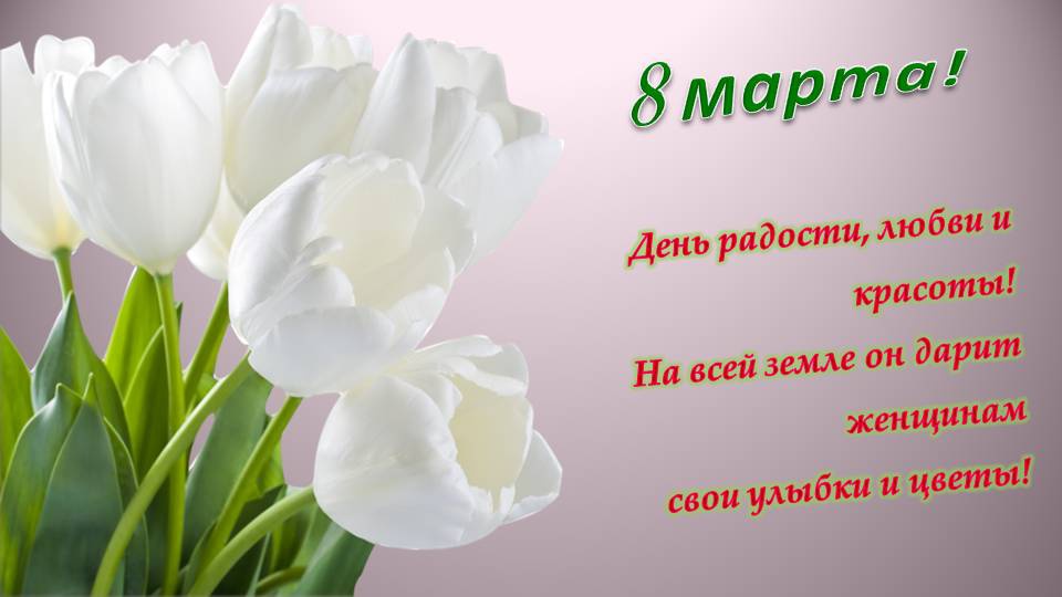 В этот весенний день желаем Вам улыбок, праздничного настроения, семейного счастья, благополучия, здоровья вам и вашим близким!