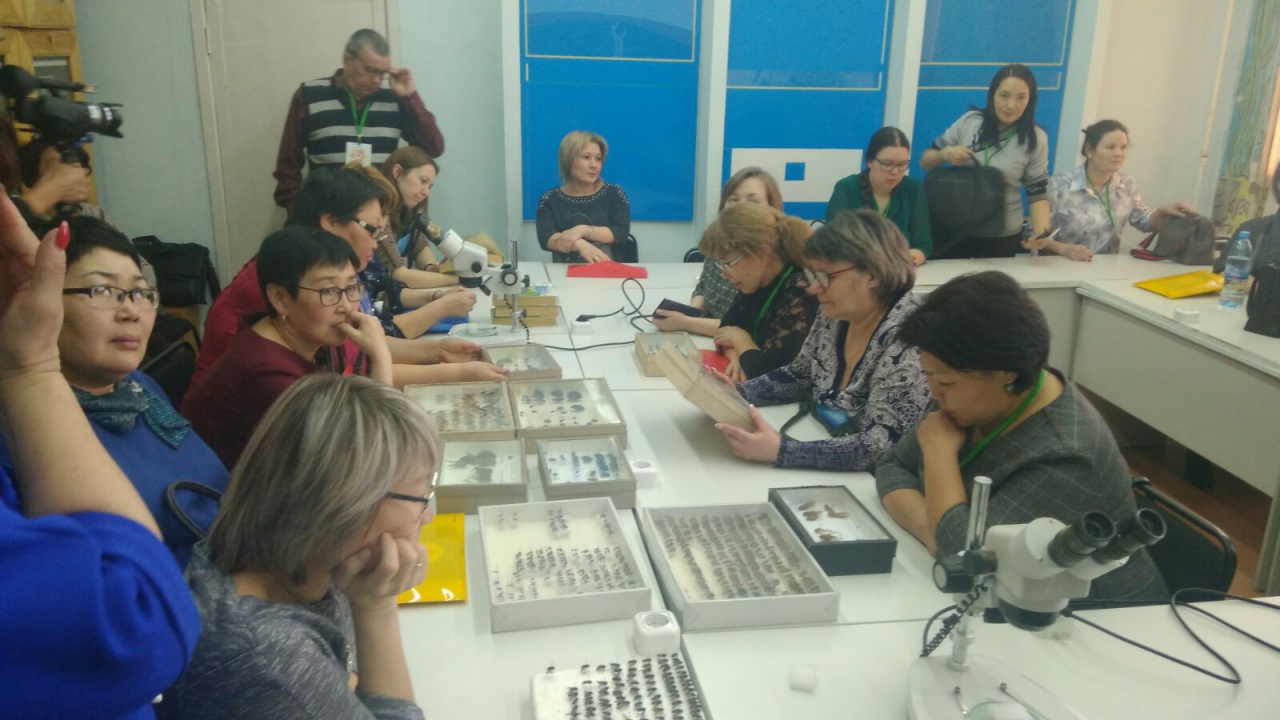 После обеда проходила экскурсия по факультету биологии, географии и землепользования, где с ведущими преподавателями обсудили самые сложные вопросы биологии. Свои мини мастер-классы представили Басхаева Т.Г. (водоросли), Цыренова М.Г. (выделение хлорофилла из свежих и сухих листьев), Налетова Л.А. (гистология тканей), Буянтуева Л.Б. (цикл Кребса - это просто!), Бадмаева Е.Н. (коротко о позвоночных), Абашеев Р.Ю. (такие разные бабочки).