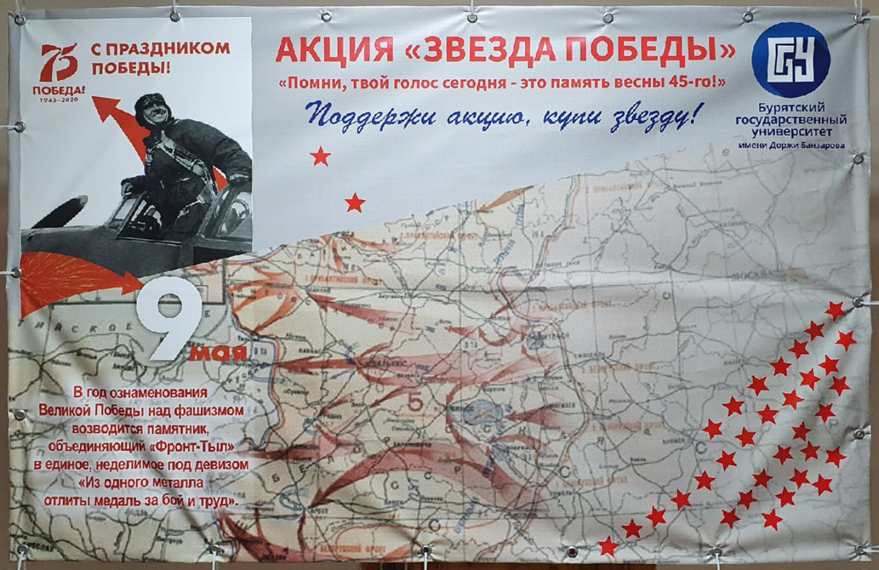 Бурятский государственный университет совместно с МО Заиграевский район изготовили стикеры "Звезда Победы". Каждый, кто приобрёл стикер, вносит свой посильный вклад в строительство Мемориального комплекса Славы в с.Эрхирик.