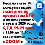 Консультации будут проходить на платформе ZOOM, присоединиться можно по ссылке https://us02web.zoom.us/j/9976663333 через ПК, планшет или телефон. Идентификатор конференции 997 666 3333 без пароля