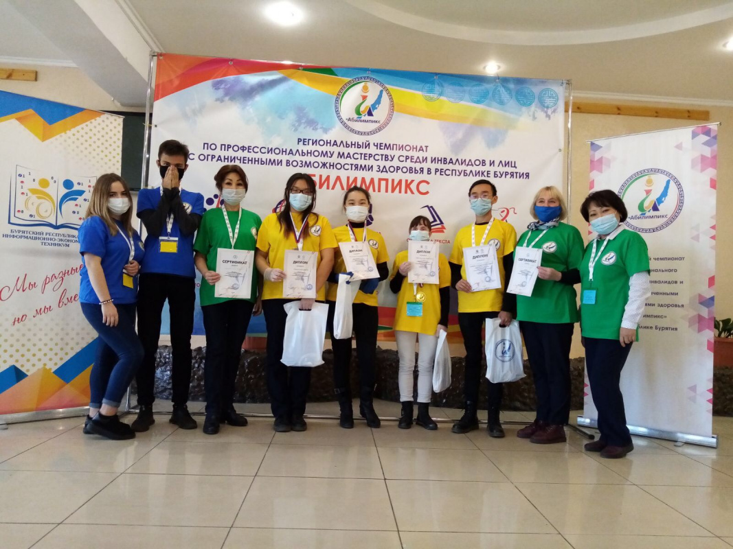 В течение 3 дней с 21 по 23 октября 2020 г. состоялся III региональный чемпионат по профессиональному мастерству среди инвалидов и лиц с ограниченными возможностями здоровья в республике Бурятия «АБИЛИМПИКС» в очном и дистанционном формате. Чемпионат проходил по 10 компетенциям: сборка-разборка электронного оборудования; сетевое и системное администрирование; вебдизайн; социальная работа; обработка текста; малярное дело; столярное дело; бисероплетение; швея; повар. Основная цель мероприятия - обеспечение эффективной профессиональной ориентации и мотивации инвалидов и лиц с ограниченными возможностями здоровья к получению профессионального образования.
