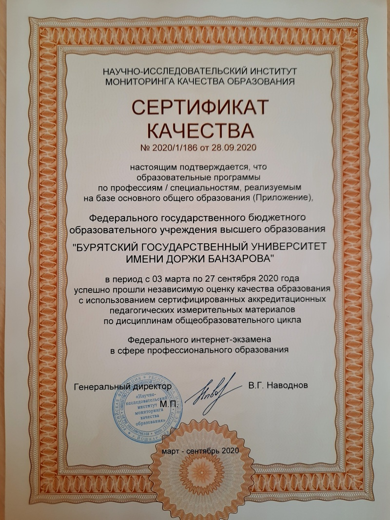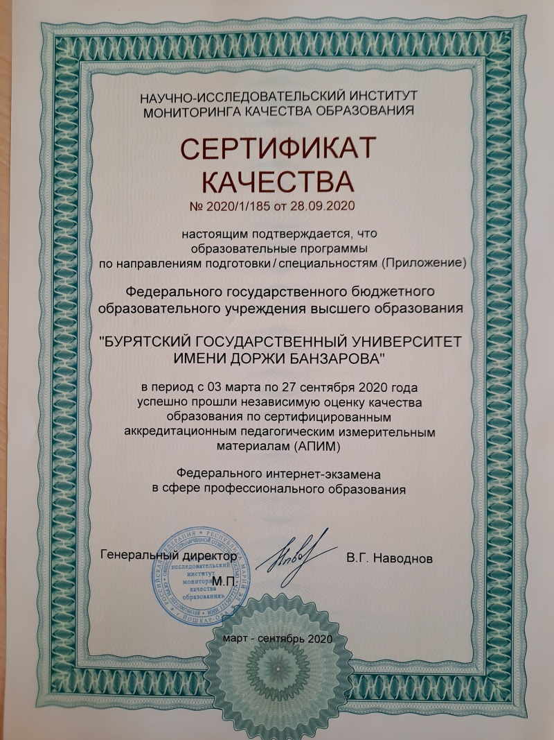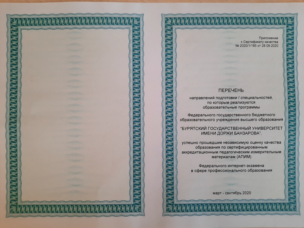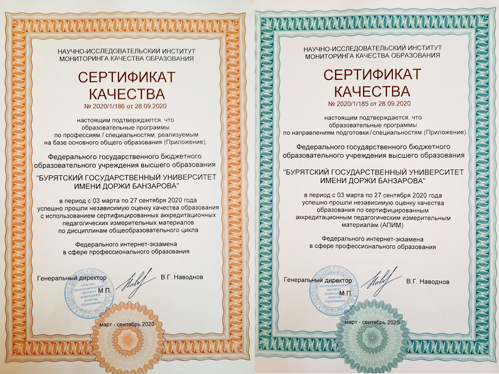 По результатам участия в ФЭПО-2020 Бурятский государственный университет имени Доржи Банзарова получил сертификаты качества по следующим направлениям подготовки высшего образования: