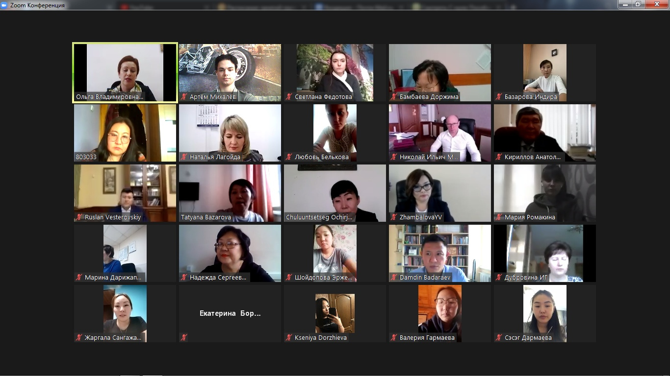 В работе конференции приняли активное участие коллеги Монгольского государственного университета, Института философии Академии наук Монголии, Монгольского национального университета коммерции и бизнеса, Монгольского международного университета «Идэр», Евразийского национального университета имени Л. Н. Гумилева, Западно-Казахстанского университета имени М. Утемисова, Кокшетауского государственного университета имени Ш. Уалиханова, Федерального научно-исследовательского социологического центра Российской Академии наук, Социологического института РАН – филиала ФНИСЦ РАН, Дальневосточного федерального университета, Санкт-Петербургского государственного института психологии и социальной работы, Института монголоведения, буддологии и тибетологии СО РАН, Восточно-Сибирского государственного университета технологий и управления, а также учреждений социальной защиты населения Республики Бурятия. Всего 102 участника, из них 23 иногородних и 22 зарубежных.