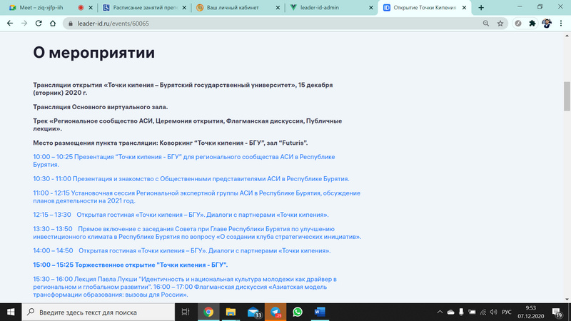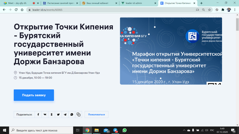 15 декабря 2020 г. состоится открытие Точки кипения БГУ имени Доржи Банзарова.