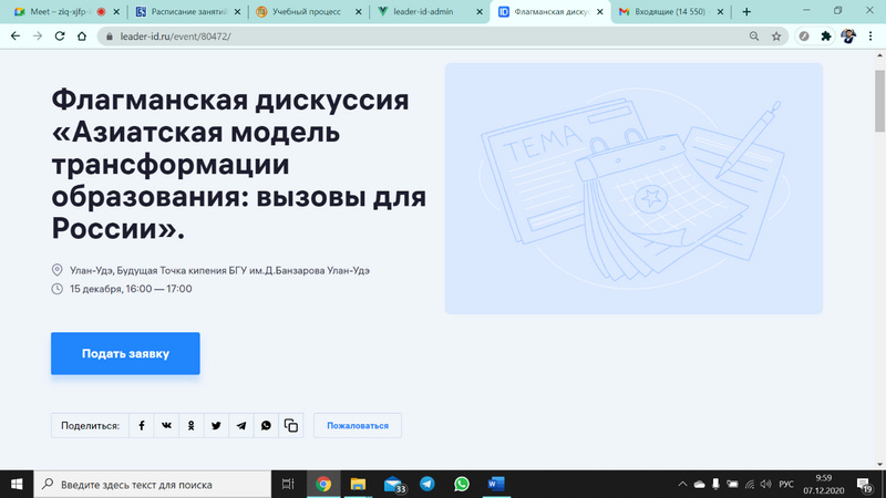 Для участия в мероприятии необходимо нажать "Подать заявку"