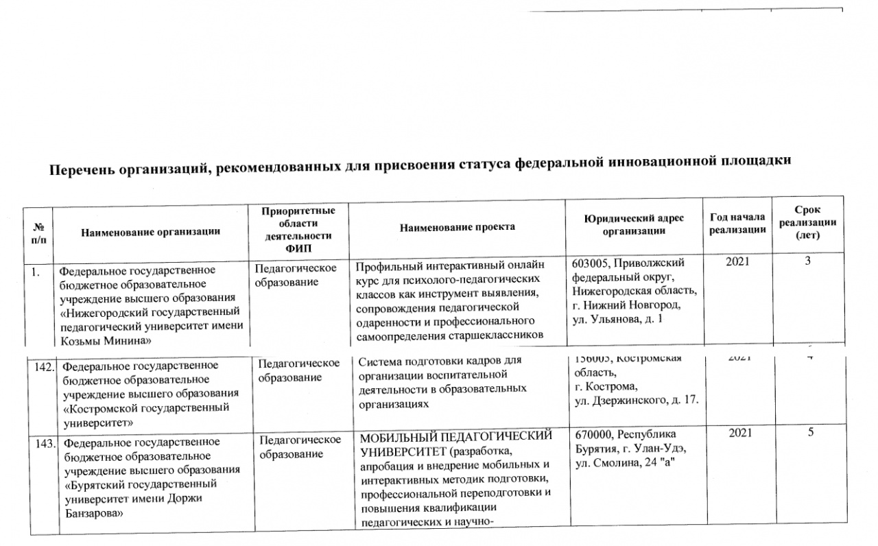 Бурятский государственный университет имени Доржи Банзарова в лице Педагогического института получил статус Федеральной инновационной площадки.
