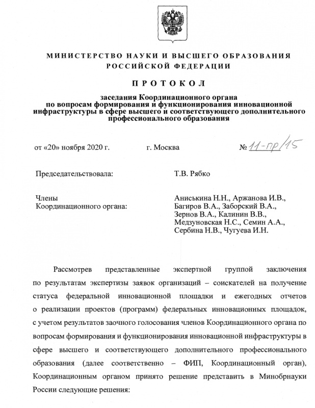 В рамках реализации федерального проекта «Учитель будущего» национального проекта «Образование» государственной программы Российской Федерации «Развитие образования» инициативной группе преподавателей Педагогического института одобрена поданная заявка на реализацию инновационного проекта «Мобильный педагогический университет» (руководитель проф. Рулиене Л.Н.). Целью коллектива, в который вошли 19 преподавателей нашего института, является разработка и внедрение модели непрерывного и междисциплинарного повышения профессионального мастерства педагогических работников системы общего и дополнительного образования.
