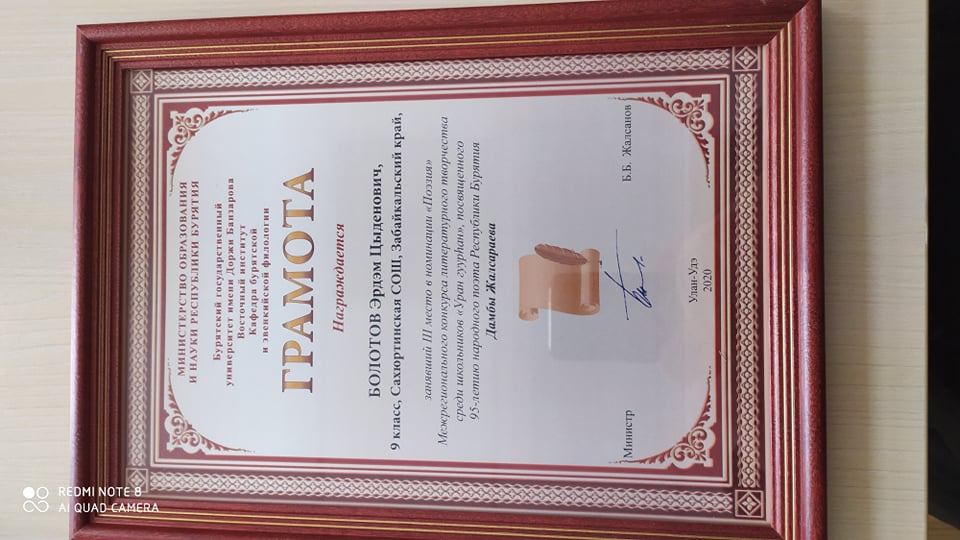 3 место - Болотов Эрдэм Цыденович, 9 класс, Сахюртинская СОШ, Забайкальский край (3 стихотворения)