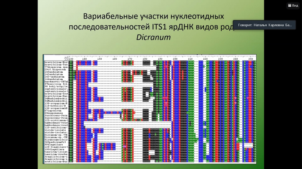Тематика докладов была разнообразной и посвящена всестороннему изучению растительных организмов на видовом, популяционном, экосистемном уровнях. Были доложены результаты как фундаментальных исследований, подводящих итоги работы докторских диссертаций, так и прикладных работ. Систематический обзор включал как низшие фотосинтезирующие организмы (доклад Ташлыковой Н.А., к.б.н., н.с. лаборатории водных экосистем Института природных ресурсов, экологии и криологии СО РАН «Многолетние изменения планктона Торейских озер»), так и высшие бессосудисто-споровые (доклад Тубановой Д.Я., к.б.н., с.н.с. лаборатории флористики и геоботаники ИОЭБ СО РАН «Род Dicranum Hedw. в России») и наземные сосудистые растения (доклад Холбоевой С.А., к.б.н., доц. каф. ботаники БГУ «Популяция Oxytropis muricata в Торской котловине», доклад Бадмаевой Н.К., к.б.н., с.н.с. лаборатории флористики и геоботаники ИОЭБ СО РАН «Расширение ареала байкальского эндемика Leymus secalinus (Poaceae) на север до бассейна р. Алдан по результатам молекулярно-генетических исследований», доклад Анцуповой Т.П., д.б.н., проф. каф. неорганической и аналитической химии ВСГУТУ, Битуевой Э.Б., д.т.н, проф., зав. каф. неорганической и аналитической химии ВСГУТУ «Фитохимическое исследование некоторых видов одуванчика (Taraxacum Wigg.»). Методы исследования включали как классические, традиционные, так и современные, с привлечением новейших методов обработки данных.