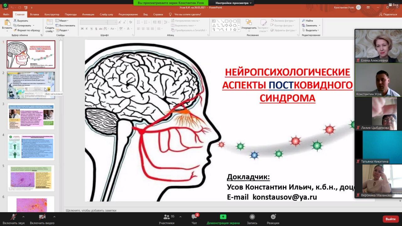 Наш Всероссийский круглый стол приобрел в конце формат международного, п.ч. откликнулись наши друзья из Белоруссии. Доклады были очень интересными, содержательными. Особый интерес вызвало выступление Усова Константина Ильича, канд.биол.н., доцента кафедры фармакологии ФГБОУ ВО «Иркутский государственный медицинский университет» с темой «Нейропсихологические аспекты постковидного синдрома».
