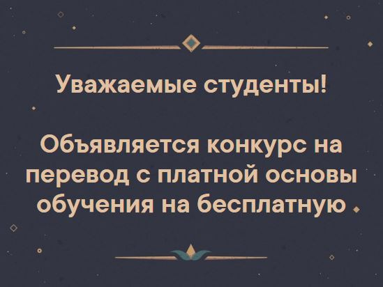 Объявляется конкурс на перевод с платной основы обучения на бесплатную.