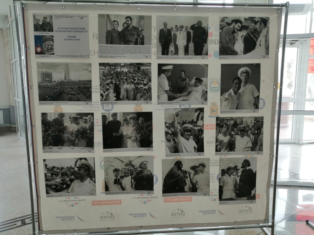 Ко Дню космонавтики в 8 корпусе Бурятского государственного университета открылась фотовыставка "Первый: Гагарин и Куба", посвященная 60-летию пилотируемой космонавтики.