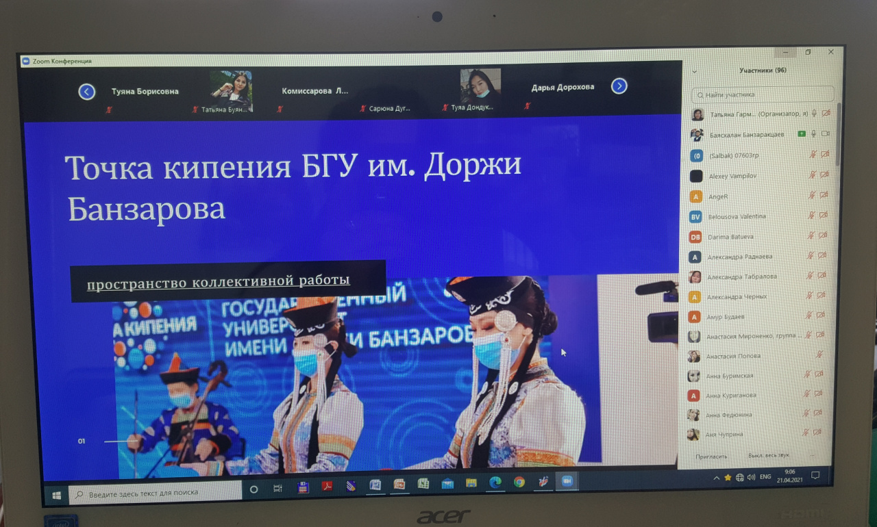 Выражаем благодарность Банзаракцаеву Баясхалану Цоктоевичу, ассистенту кафедры общей педагогики Педагогического института БГУ, осветившем в своем пленарном докладе ««Точка кипения» БГУ – пространство инноваций и научно-технологического сотрудничества студенческой молодежи в условиях цифровизации» возможности и перспективы научной, творческой и общественной работы студентов, преподавателей и всех заинтересованных в техническом, экономическом и социальном прогрессе жителей Республики Бурятия.