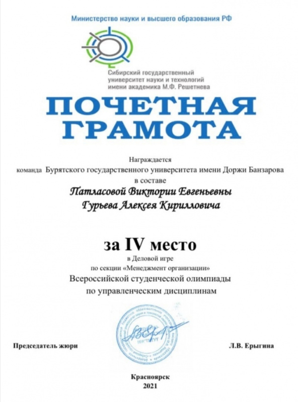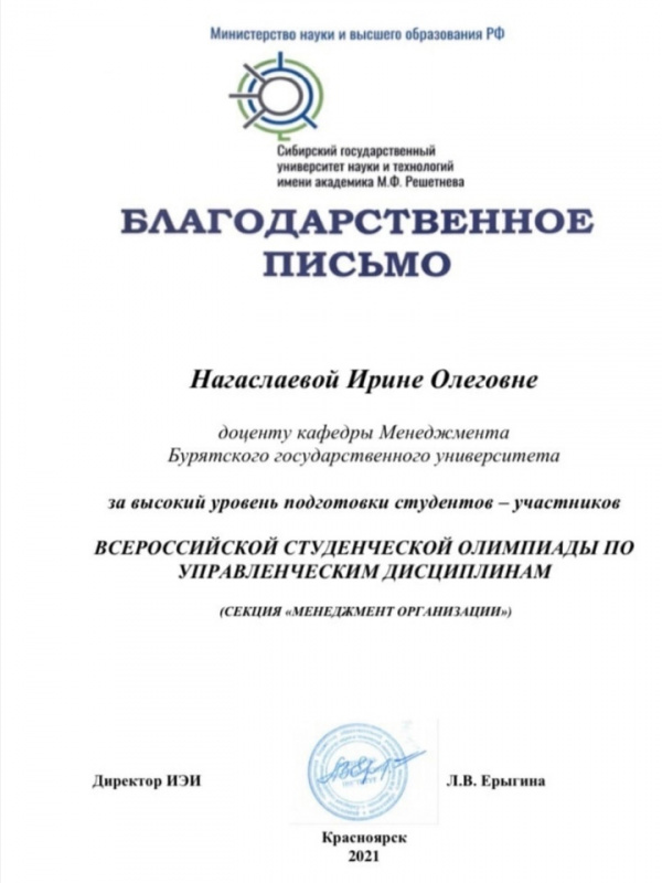 От лица Института мы выражаем огромную благодарность за подготовку участников заведующей кафедрой менеджмента Ирине Олеговне Нагаслаевой, а ребятам желаем дальнейших успехов и ценного опыта!