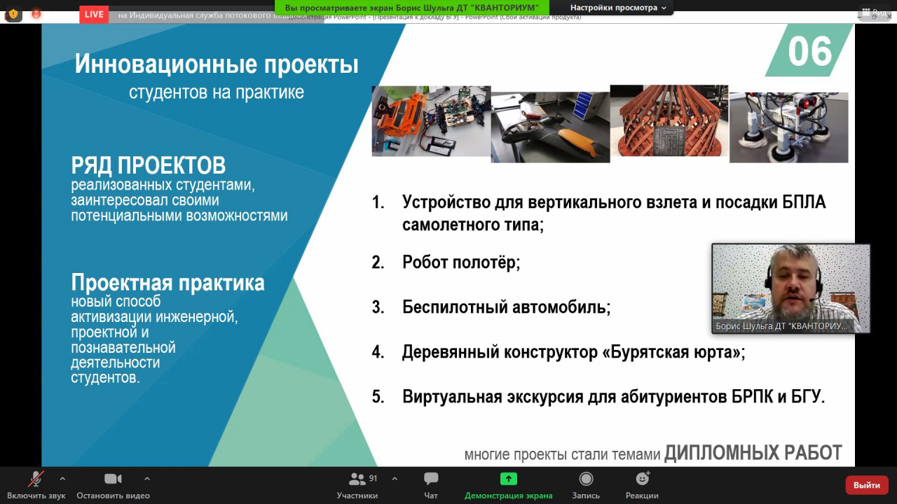 Во второй части пленарного заседания вниманием аудитории завладели директор технопарка «Кванториум» г.Улан-Удэ Шульга Борис Владимирович и преподаватель кафедры вычислительной техники и информатики Дашиев Дмитрий Андреевич.