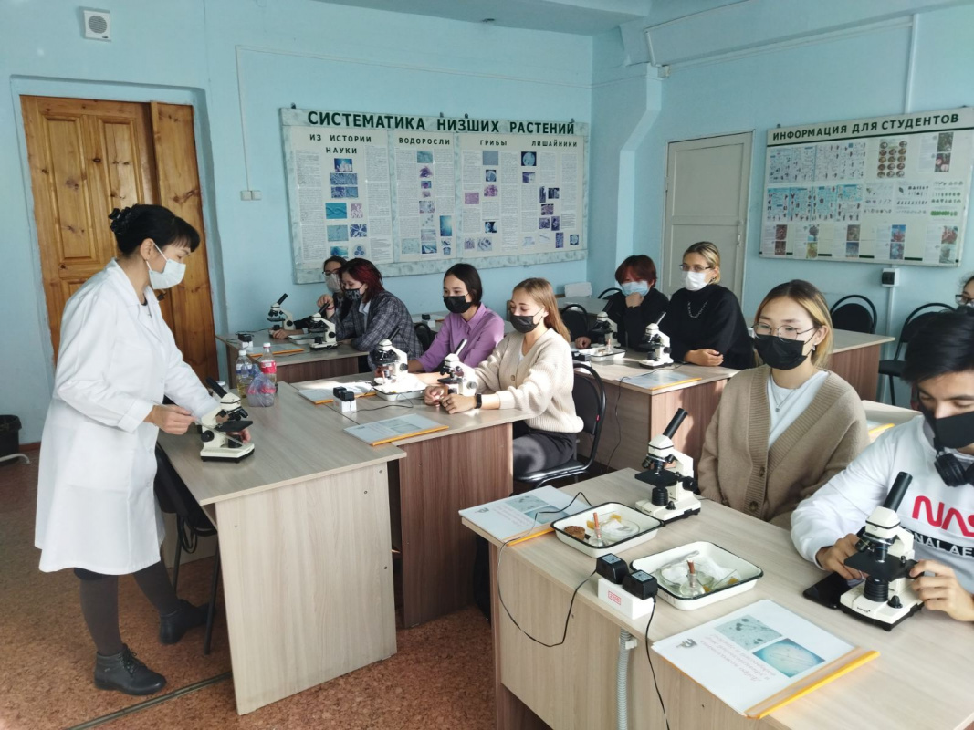 Лабораторное занятие прошло на базе кафедры ботаники БГУ: были сделаны лабораторные занятия по университетской программе «Альгология». Молодые исследователи работали на оптических приборах, делали временные микропрепараты биологических объектов.