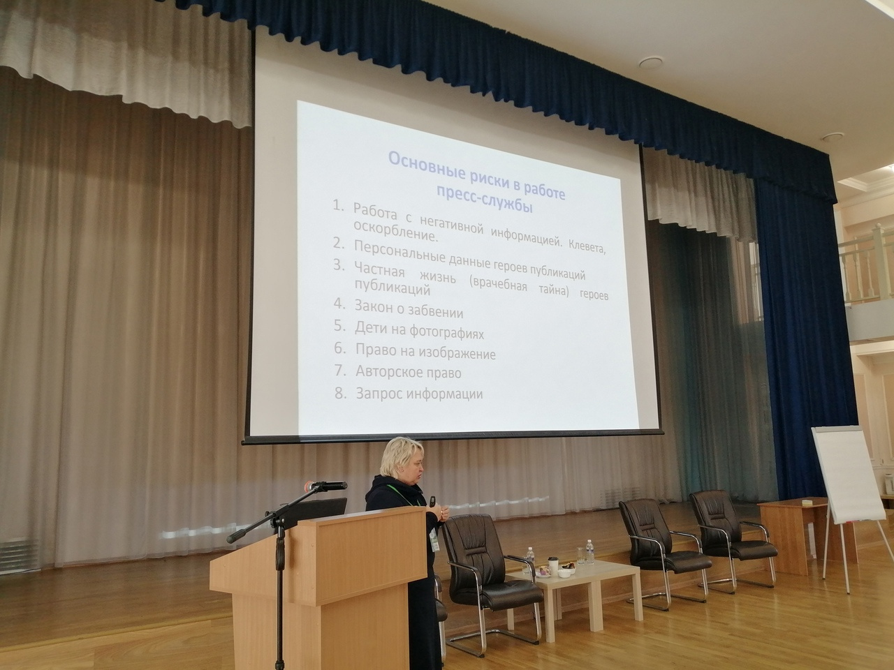 Галина Антонец рассказала слушателям о правовых аспектах медиа, об ограничениях распространения массовой информации в соответствии с нормами российского информационного права. А также она обозначила юридические риски в работе СМИ.