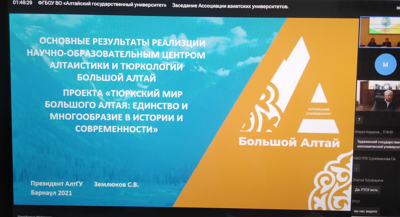 Отметим, что Центром Ассоциации является на сегодняшний день Алтайский государственный университет (г. Барнаул), сумевший объединить вокруг себя и российские, и зарубежные вузы-партнеры Ассоциации, успешно реализующий сетевые научно-образовательные проекты, в частности по тюркологии, по истории тюрко-монгольских народов, их культурно-цивилизационному наследию, взаимодействию со славянскими народами. Этот проект поддержан Министерством науки и высшего образования РФ и имеет большой отклик в научной и образовательной среде.