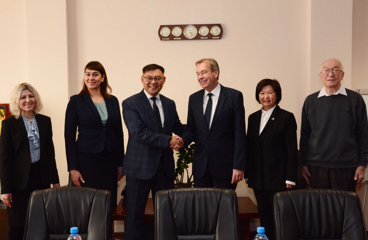 01 декабря 2021г. университет принял с официальным визитом делегацию Генерального консульства ФРГ в г. Новосибирске под руководством назначенного в декабре 2020г. генерального консула господина Бернда Финке. Встреча носила предметный и содержательный характер. Генконсул отметил, что, несмотря на обширную территорию Сибирского и Дальневосточного консульского округа и множество университетов, относящихся к округу, Бурятский государственный университет имени Д. Банзарова зарекомендовал себя как один из центральных вузов в развитии и сохранении международных связей с немецкоязычными партнерами. Действительно, история международного сотрудничества БГУ с германскими партнерами берет начало с 1993г. с установления кооперации с Немецкой службой академических обменов (DAAD) и все это время сотрудничество имело и имеет стабильный характер.
