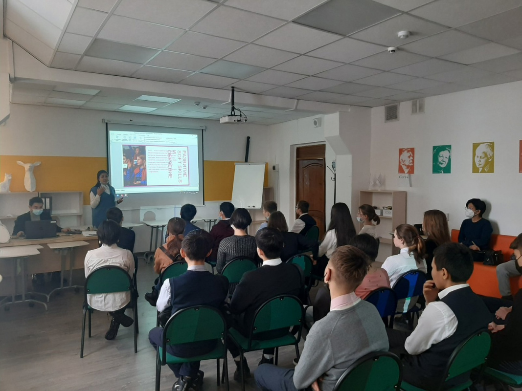 Активисты федерации студенческого самоуправления провели с ребятами тренинг о студенческой жизни в БГУ имени Доржи Банзарова, также для учащихся было организовано профориентационное тестирование и викторины.