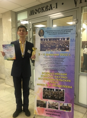 Дом научной коллаборации БГУ поздравляет Федорова Николая и Дьякова Кирилла с победами на Всероссийском конкурсе научно-исследовательских работ им.Д.И.Менделеева - 2-4 февраля 2022г.!